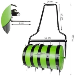 Udržujte trávník v perfektní kondici s praktickým válcem a aerátorem 2v1. Robustní rám a odolné materiály zajišťují dlouhou životnost, zatímco pět výměnných nástavců s hroty účinně proráží půdu až do hloubky 4 cm pro lepší přísun vzduchu, vody a živin. Po naplnění válce vodou (až 35 l) snadno zhutníte půdu a přitlačíte osivo pro rovnoměrný růst.