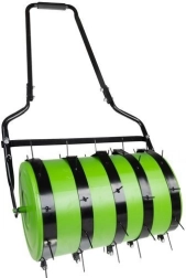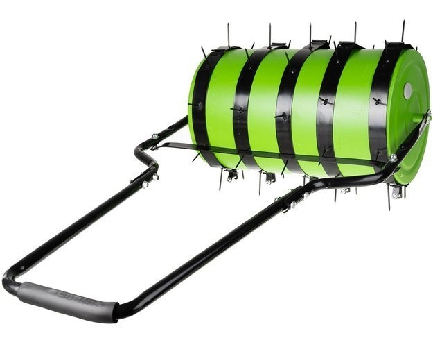 Hladký zelený válec lze naplnit vodou až do 35 litrů, čímž získáte ideální hmotnost pro zarovnání povrchu a přitlačení osiva.