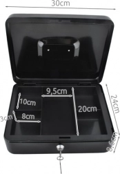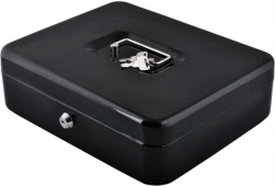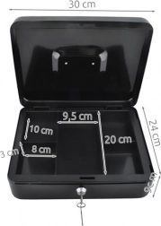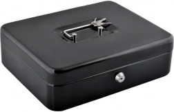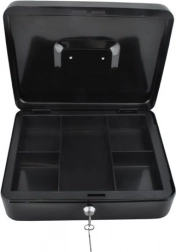 Tato velká kovová pokladní kazeta v elegantní černé barvě spojuje bezpečnost, přehlednost a odolnost. Lakovaný ocelový plášť a pevné vnitřní panty chrání obsah před poškozením i neautorizovaným přístupem, zatímco zámek na klíč (2 klíče v balení) zajišťuje jistotu uzamčení.