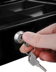 Vnitřní plastová vložka s přihrádkami udržuje mince a bankovky přehledně uspořádané pro rychlejší práci u pokladny.