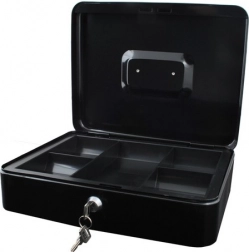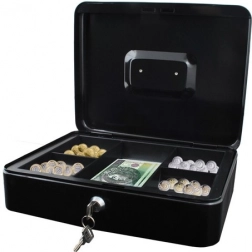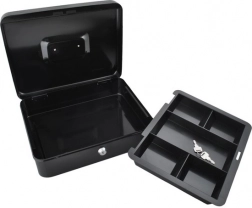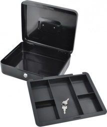 Praktická pokladní kazeta ve velkém formátu spolehlivě ochrání hotovost, dokumenty i drobné cennosti. Díky zámku na klíč, odolné ocelové konstrukci, vnitřnímu pořadači s přihrádkami a sklopnému madlu je ideální pro domácnost, kancelář i prodejní akce.