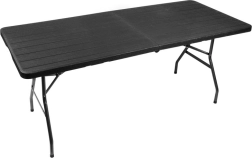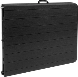 Hledáte velký a odolný stůl pro rodinné oslavy, grilování nebo akce? Tento skládací stůl s délkou 180 cm poskytne dostatek místa pro servírování i pohodlné sezení větší skupiny. Deska z HDPE s atraktivním vzhledem dřeva je pevná, pružná a snadno se udržuje. Po složení se stůl promění v plochý kufřík, který jednoduše přenesete a uložíte.