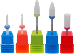 Sada 5 keramických fréz je ideální pro profesionální salony i domácí péči. Keramika nepřenáší teplo, takže při práci nevzniká nepříjemné pálení, a současně je mimořádně trvanlivá a efektivní. Různé tvary a stupně zrnitosti umožní přesné odstranění materiálu, zjemnění kůžičky i vyhlazení povrchu nehtu.