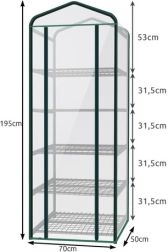 Kompaktní fóliovník se stabilní kovovou konstrukcí a 5 kovovými policemi je ideální pro pěstování sazenic a bylinek na zahradě, terase i balkóně. Snadná montáž, ochrana rostlin před větrem a přízemními mrazíky a optimální mikroklima díky pevně upevněné fólii zajistí zdravý růst vašich rostlin.