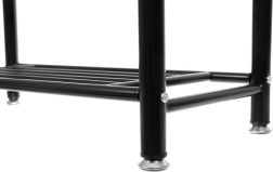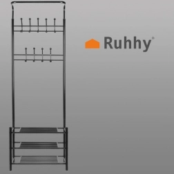 Odolný kovový rám zajišťuje stabilitu i při vyšším zatížení a nastavitelné nožičky pomáhají s dorovnáním na nerovném povrchu. Promyšlené rozvržení háčků a polic usnadňuje organizaci celé rodiny.