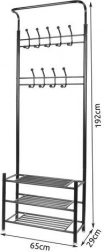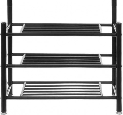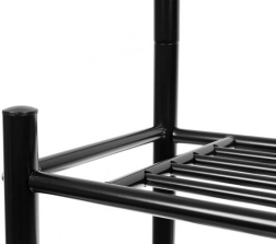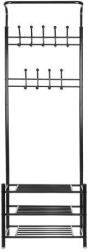 Udržte předsíň i ložnici dokonale přehledné díky tomuto víceúčelovému stojanu na oblečení s policemi. Nabízí 3 prostorné police na obuv, 18 háčků na kabáty a doplňky a stabilní kovovou konstrukci, která šetří místo a spolehlivě unese každodenní zátěž.