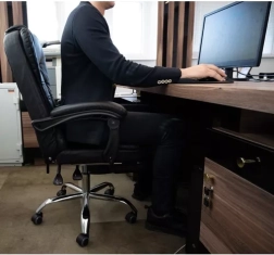 Vysoce kvalitní konstrukce z ekokůže a pěny zaručuje mimořádnou odolnost a snadnou údržbu. Jednoduše utřete vlhkým hadříkem a židle bude opět vypadat jako nová. Nicméně, její polohovací funkce umožňuje odklon opěradla a zvýšené pohodlí při odpočinku.