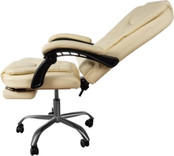 Naše vysoce kvalitní kancelářská židle je navržena pro pohodlí a ergonomickou podporu během dlouhých pracovních hodin. Židle nabízí vysouvací opěrku nohou, která zajišťuje lepší cirkulaci krve a minimalizuje únavu. Funkce naklápění umožňuje relaxaci, zatímco nastavitelná výška sedáku dodává univerzálnost pro každého uživatele.