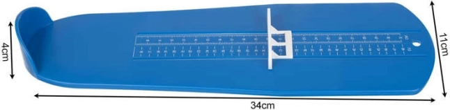 Měrka má rozsah měření 9-31 cm, což odpovídá velikostem obuvi 15-48 v EU.
