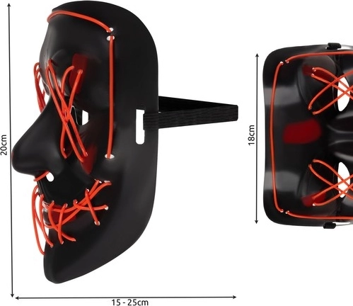 Maska nabízí tři různé režimy svícení - stálé, pulzující a rychlé blikání, čímž přidává zábavný prvek jakékoli párty. Také se dodává s elastickým páskem, který umožňuje perfektní přizpůsobení tvaru obličeje.