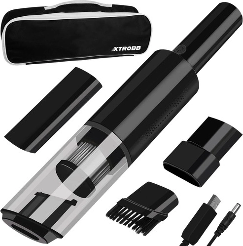 Součástí balení je bohaté příslušenství, včetně praktického transportního pouzdra, které usnadňuje přenášení a skladování vysavače spolu s přiloženými nástavci. Příslušenství zahrnuje štětec pro bezpečné čištění citlivých částí a úzkou štěrbinovou hubici pro těžko přístupná místa.