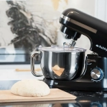 Mísa o kapacitě 4,5 litru je vyrobena z kvalitní nerezové oceli a obsahuje ochranný kryt proti stříkání, což pomáhá udržovat čistotu během míchání.