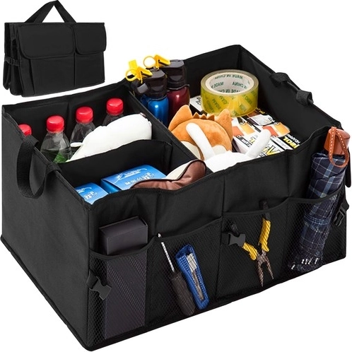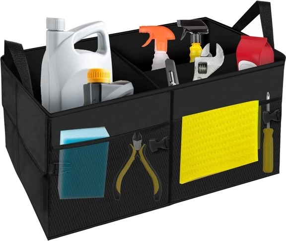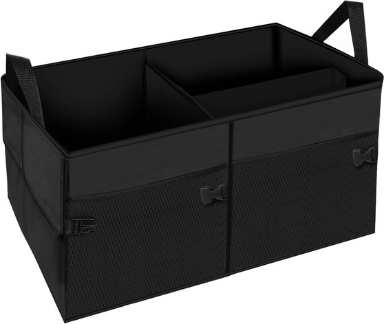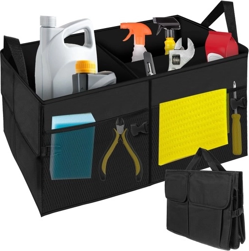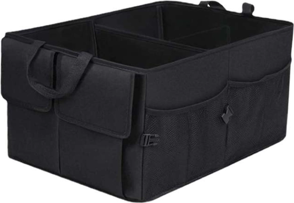 Udržte pořádek v autě s prostorným a skládacím organizérem do kufru z odolné tkaniny Oxford. Má zpevněné stěny, 1 velkou a 2 menší komory, boční kapsy na suchý zip a síťované kapsy. Díky přenášecím uším ho snadno vyjmete z auta, nastavitelná délka 26–52 cm šetří místo.