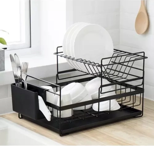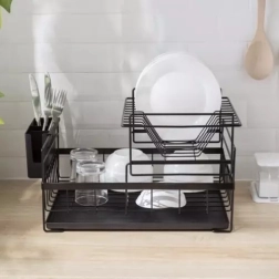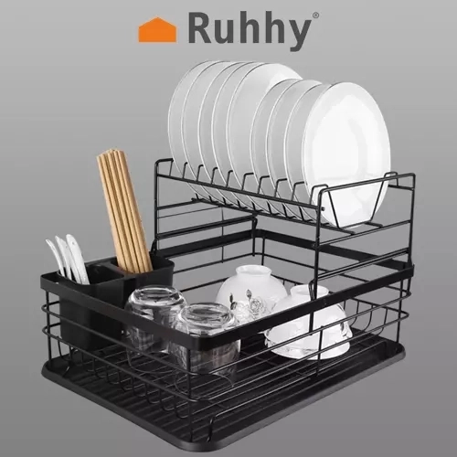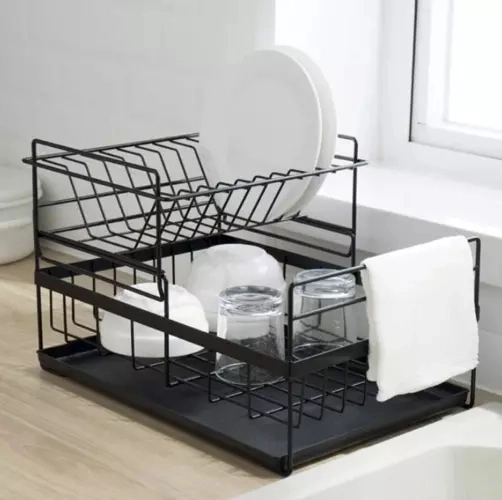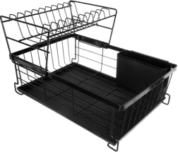 Tato dvoupatrová sušička na nádobí efektivně využívá prostor na pracovní desce: horní patro pojme až 9 talířů, spodní je ideální pro misky, sklenice a hrnky. Konstrukce z uhlíkové oceli s odolnou povrchovou úpravou je rezistentní vůči vlhkosti a každodennímu používání, zatímco protiskluzové nožičky zajišťují stabilitu a bezpečnost i při vyšším zatížení.