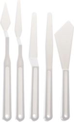 Míchejte barvy na plastové paletě, tvořte jemné tahy i plochy různými štětci a vytvářejte textury pomocí pěti tvarovaných malířských špachtlí.
