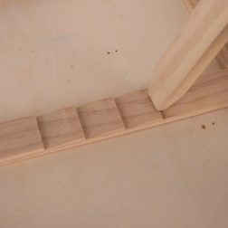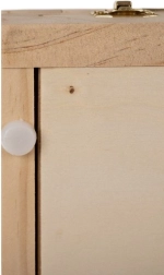 Skládací kufřík z borovicového dřeva se promění v pevnou štafle. Zásuvka a kovové přezky udrží pomůcky bezpečně uložené, přenos usnadní pohodlné madlo.