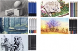 Různé tvrdosti tužek a rozmazávací tyčinky umožní jemné přechody, realistické textury i ostré kontury. Ideální pro studijní kresbu i ilustraci.