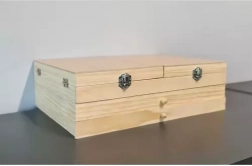Dřevěný kufřík se stojanem a 2 zásuvkami