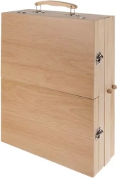 Tato univerzální výtvarná sada je ideální pro začátečníky i pokročilé. Dřevěný kufřík ze smrkového dřeva se po otevření promění v stabilní stolní stojan (easel) a vytvoří přenosnou malířskou stanici. Díky chytrým přihrádkám má každý nástroj své místo – od štětců a tužek po barvy a paletu.