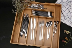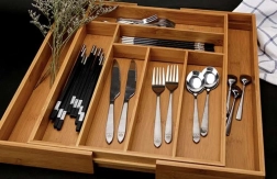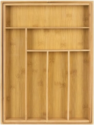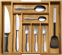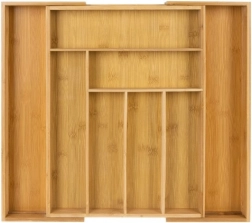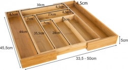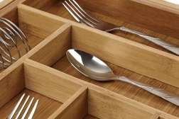 Organizér je navržen tak, aby udržel věci přehledně na svém místě a zároveň usnadnil každodenní používání. Hladké provedení z bambusu snižuje ulpívání nečistot a umožňuje snadnou údržbu pod tekoucí vodou. Praktická výška a členění přihrádek zajistí pohodlné uložení lžic, vidliček, nožů i drobného příslušenství.