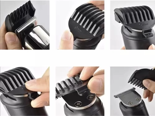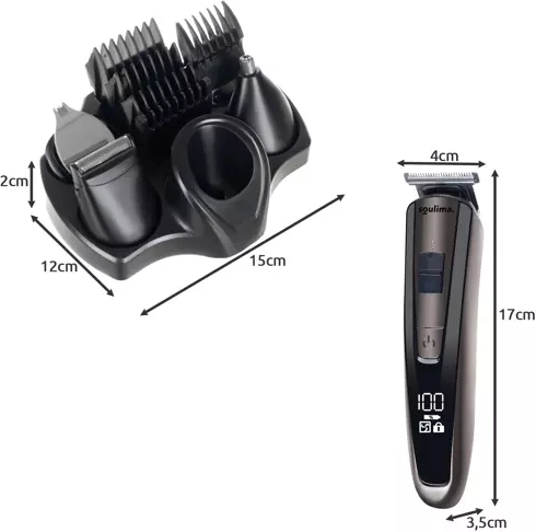 Zastřihovač nabízí širokou škálu aplikací: od stříhání a modelování vlasů, přes holení vousů a kníru, až po rovnání obočí a zastřihování chloupků v nose a uších. Balení obsahuje 5 vyměnitelných nástavců, včetně zastřihovače nosu a nástavce na holení, a dále 5 vodicích hřebenů, nabíjecí kabel, stojan, mazací olej a čisticí kartáček. Díky variabilním délkám střihu a vestavěným možnostem nastavení výšky si s ním jednoduše a přesně upravíte vlasy, kníry a vousy do požadované délky a tvaru. Zastřihovač je navíc vybaven LCD displejem, který ukazuje stav baterie a informuje, zda je přístroj uzamčen, čímž předchází náhodné aktivaci během cestování či skladování.