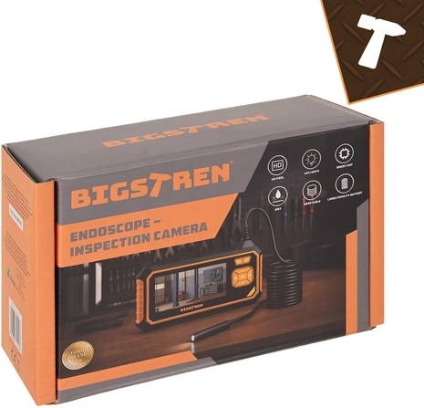Profesionální endoskopická kamera BIGSTREN s 4,3" LCD nabízí ostrý obraz ve Full HD, 5m flexibilní kabel pro dosažení do těžko přístupných míst a 6 LED diod se 3 úrovněmi jasu. Díky vodotěsnosti IP67, výdrži až 3 hodiny a sadě 4 praktických nástavců je ideální pro domácí i profesionální inspekce bez nutnosti demontáže.