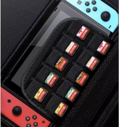 Promyšlené vnitřní uspořádání zahrnuje síťovanou kapsu na kabely či sluchátka a sloty na 10 kartridží, abyste měli svou herní knihovnu stále po ruce. Kompaktní rozměry a praktické ucho z něj dělají ideální volbu na cestování i každodenní používání.
