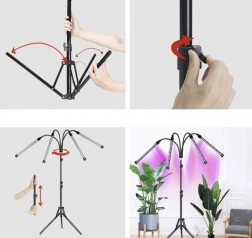Tato plnospektrální pěstební lampa kombinuje vlnové délky 660 nm (červená) a 460 nm (modrá), které jsou rostlinami efektivně absorbovány pro intenzivní fotosyntézu. Čtyři samostatné světelné panely s otočnými a ohebnými rameny 360° nasměrujete přesně tam, kde vaše rostliny světlo potřebují.