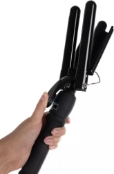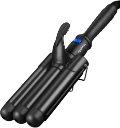 Tato trojitá kulma s průměrem válců 22 mm vytváří jednotné, přirozené vlny během chvilky – stačí vložit pramen, stisknout a posunout. Keramické PTC topné těleso zajistí rychlé a rovnoměrné zahřátí a šetrný kontakt s vlasovým vláknem bez zbytečného přehřívání.