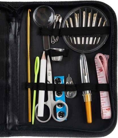 Sada obsahuje nástroje a pomůcky pro rychlé a snadné opravy a úpravy oděvu, což vám ušetří čas a náklady za profesionální služby.