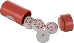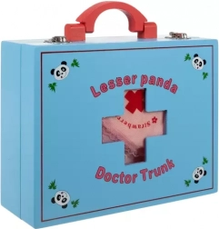 Součástí je také zubní model s vyjímatelnými zuby pro trénink správné dentální hygieny, stetoskop, teploměr, injekční stříkačka, „léky“ a další doplňky. Dřevěné zpracování je nadčasové, odolné a příjemné – ideální pro každodenní hraní.