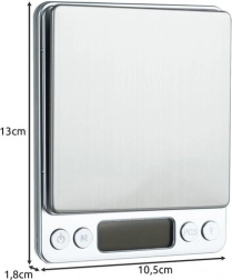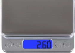 Hledáte přesné měření i u těch nejmenších množství? Tato digitální kuchyňská váha z nerezové oceli s plastovým tělem nabízí přesnost 0,01 g a maximální kapacitu 500 g. Díky modře podsvícenému LCD snadno odečtete hodnoty za každých podmínek a funkce TARE vám umožní vážit suroviny přímo v misce bez složitého přepočítávání.