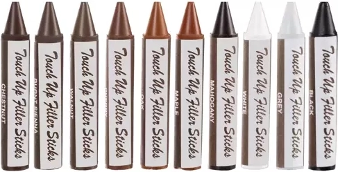 Obsahuje 10 různých barev pro shodu s různými odstíny dřeva, plus jeden bezbarvý marker pro lesklé dokončení.