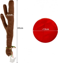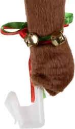 - Pružná hnědá paroží: Dva velké a odolné rohy s zvonečky na červené a zelené stužce pro dokonalou vánoční náladu.