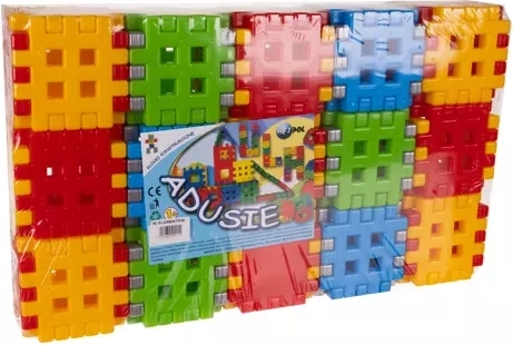 Stavebnice Adusie přináší dětem radost z tvoření i učení. Velké, pevné a lehké dílky v barvách žlutá, červená, modrá, zelená a šedá se snadno skládají do rozmanitých tvarů a konstrukcí. Děti si přirozeně trénují úchop, koordinaci oko–ruka a logické myšlení.