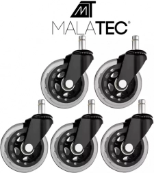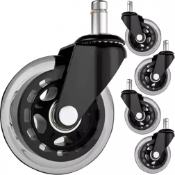UNIVERZÁLNÍ - sada obsahuje 5 koleček, která vám umožní vyměnit celý pětihvězdičkový základ za kancelářskou, herní, otočnou nebo dětskou židli . Sada sedípro většinu křesel dostupných na trhu s průměrem čepu 11 mm .