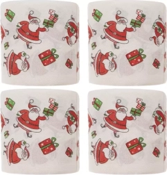 Dodejte své koupelně sváteční náladu s balením 4 roliček 2vrstvého toaletního papíru s potiskem SANTY a dárků. Každá role nabízí 250 potištěných útržků, příjemnou měkkost a spolehlivou savost. Ideální pro domácnosti i provozovny, které chtějí hostům vykouzlit úsměv během Vánoc.