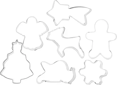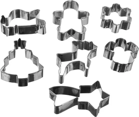 Praktická sada 7 kovových vykrajovátek z nerezové oceli pro snadné pečení vánočního cukroví. Nabízí ostrý řez, pohodlný profilovaný okraj a 7 oblíbených tvarů. Ideální na perníčky, sušenky i fondán – odolná a snadno se čistí.