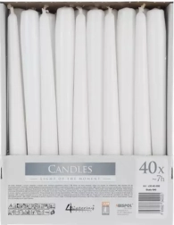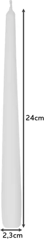 Vytvořte si příjemnou atmosféru s bílými kónickými svíčkami, které skvěle doplní slavnostní tabuli i interiérovou dekoraci. Díky výšce 24,5 cm a štíhlému průměru 2,3 cm působí elegantně a hodí se do většiny klasických svícnů.
