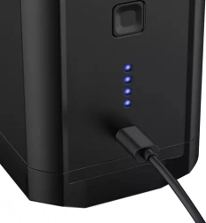 Největší výhodou je bezdrátovost pumpy. Lze ji použít i na místech bez přístupu k síti. Akumulátor má kapacitu 5200mAh a informaci o stavu nabití poskytují čtyři LED diody.