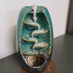 Keramický vonný komínek se vyznačuje jednoduchým a elegantním designem. Při zapálení speciálního kadidla vytváří spektakulární efekt vodopádu s dýmem proudícím zpětným tokem. Je vhodný do každého interiéru, poskytuje nejen vizuální, ale i aromatické potěšení.