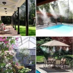 20ROZPRAŠOVACÍ TRYSKY - vysoce kvalitní trysky vytvářejí velmi lehkou a jemnou vodní clonu, která kontroluje okolní teplotu a umožňuje její účinné snižování. Průměr trysky 6 mm vytváří "zahradní klima".