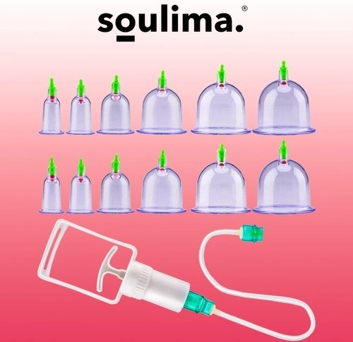 Sada obsahuje 12 průhledných plastových baněk s ventilky a ruční vakuovou pumpou, která vytváří podtlak bez použití ohně. Baňky jsou opakovaně použitelné, lehké a snadno se čistí. Využijete je při relaxačních masážích, regeneraci po sportu i při wellness rituálech zaměřených na zlepšení mikrocirkulace a úlevu od svalového napětí.