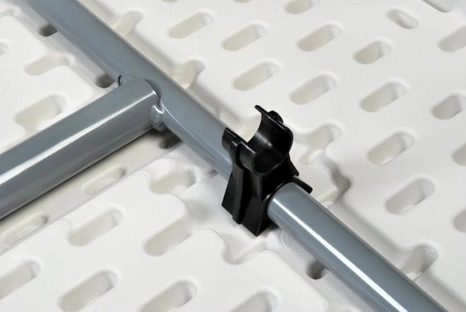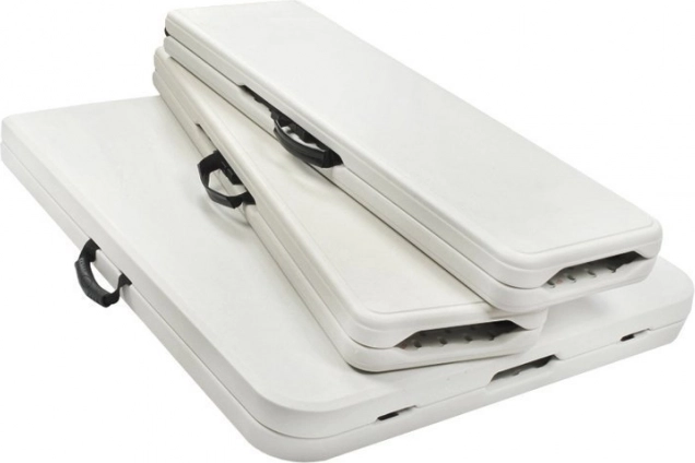 Speciální protiskluzové koncovky a zajištění nohou zabraňují nechtěnému skládání a pohybu stolu.