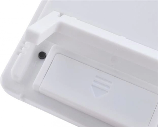 Postavte ji na stůl pomocí stojánku nebo zavěste na zeď. Napájení 1× AAA umožní provoz kdekoliv v interiéru.