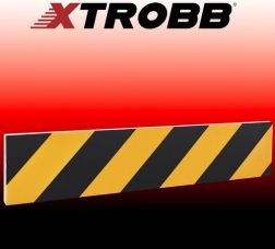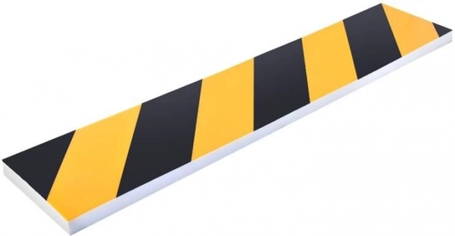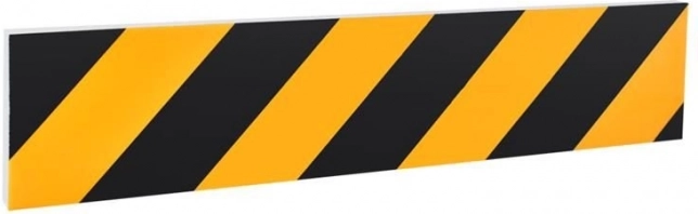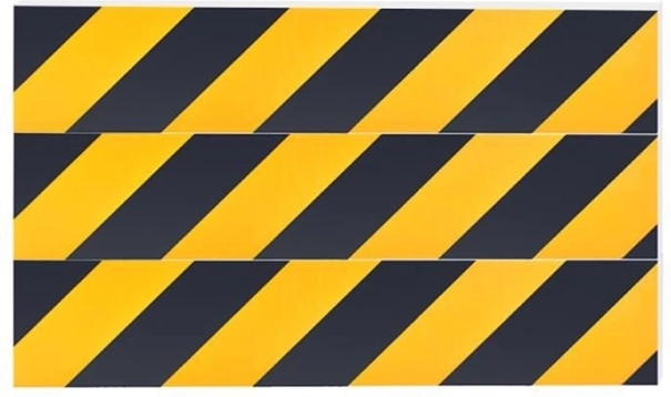 Žluto‑černé diagonální pruhy fungují jako optické varování a usnadňují odhad vzdálenosti od stěny.