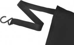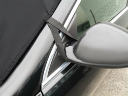 Elastické pásky s háčky se upevní k zrcátkům a kolům, okraje zajistíte dveřmi. Clona přilne ke sklu a odolá větru.