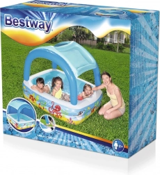 Tento dětský nafukovací bazén od značky Bestway je vyroben z odolného vinylového materiálu, který zaručuje dlouhotrvající zábavu a bezpečnost při hraní. Bazén obsahuje dva oddělené nafukovací prstence, které poskytují stabilitu a bezpečí, zatímco nafukovací baldachýn chrání děti před škodlivými slunečními paprsky. Součástí balení je také voděodolná opravná záplata, která umožňuje opravit bazén i ve vodě.