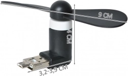 Praktický mini větráček s dvojitým konektorem 2v1 se připojí přímo do microusb telefonu nebo do běžného usb portu (powerbanka, notebook). Energii si bere přímo z portu, takže nepotřebuje baterie ani nabíjení. Pro použití s telefonem je nutná funkce OTG – před nákupem si ji prosím ověřte. Větráček nefunguje přes redukce či prodlužovací adaptéry.