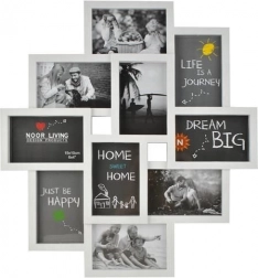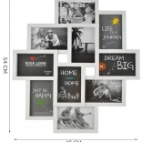 Stylový rám na 10 fotografií o maximálním formátu 10×15 cm přináší praktické řešení pro uspořádání vzpomínek na jednom místě. Oceníte atraktivní kolážový efekt, bezpečné provedení bez skla a snadnou montáž zavěšením či opřením o stěnu.